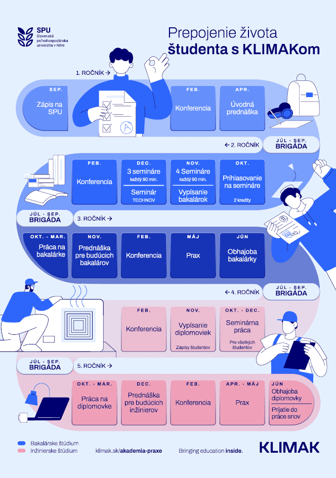 Účastníkom ponúkame nielen odborný rast, ale aj konkrétne benefity – finančné odmeny za odvedenú prácu, možnosť zárobku počas prázdnin či bonusy za samoštúdium prostredníctvom aplikácie MyKLIMAK. Počas roka sa zapoja do odborných školení, konferencií a budú pracovať s modernými technológiami na zaujímavých projektoch.